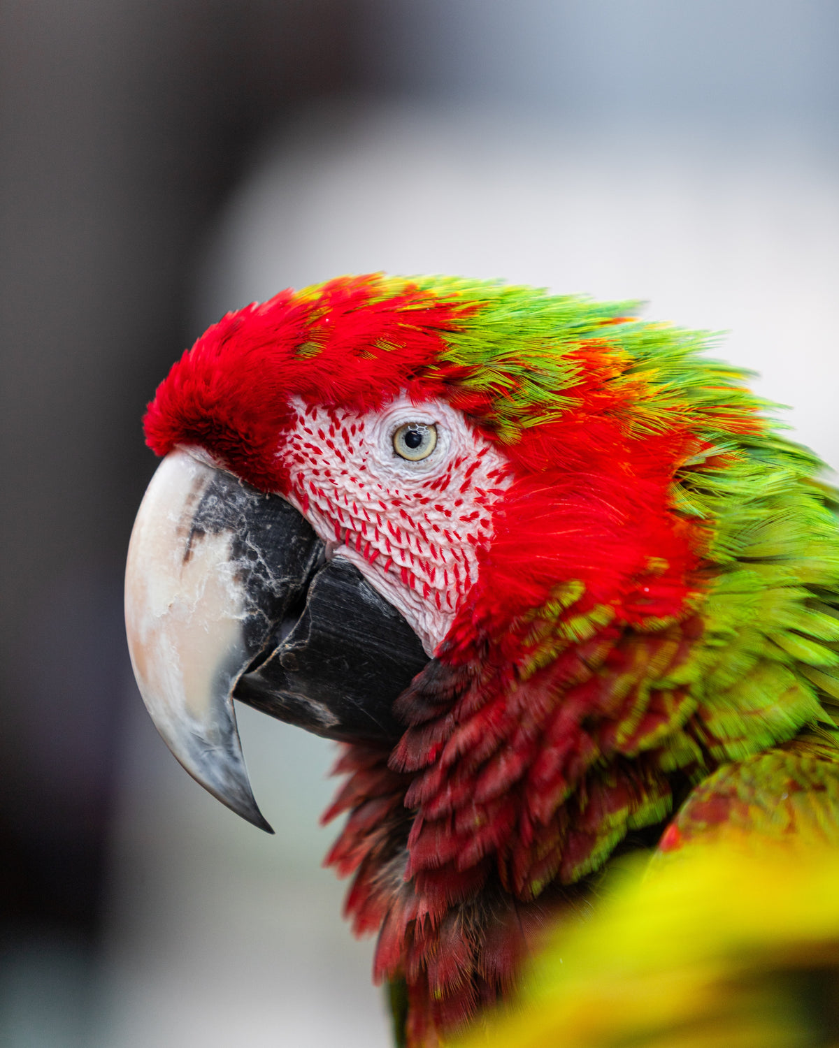 Buff-winged Macaw (Ara ambigua) — A large, powerful macaw native to the rainforests of Central and South America, also known as the Great Green Macaw. It is recognized by its predominantly green body, pale buff-colored wing feathers, red forehead, and strong black-and-ivory beak.